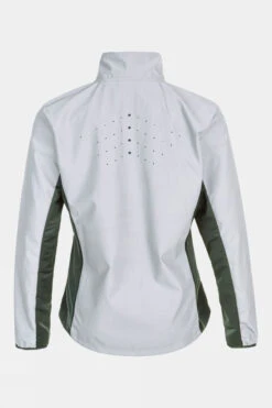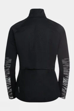 Versatile training jacket with hood and adjustable drawstring at waist for a feminine fit. Made of lightweight, woven wind- and water-repellent polyester offering efficient ventilation. Two zip side pockets.