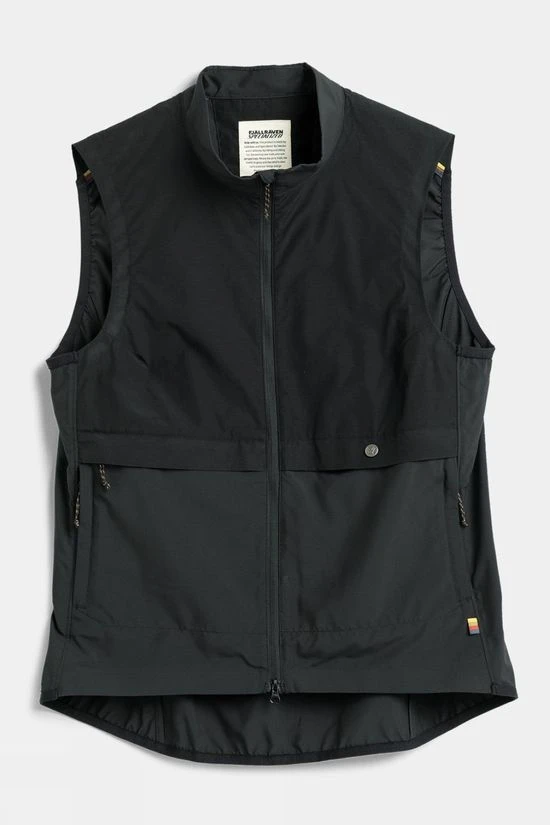 The vest features a high-low hem, with elasticated back and armholes for a closer fit when riding, several functional pockets including two top-loaded pockets and two zippered hand pockets and can be packed into its own pocket. Great as backup gear on any bike ride. Part of the Fjällräven/Specialized series for urban rides and bikepacking adventures.