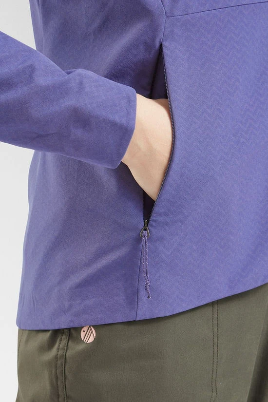 The Women’s R1 CrossStrata Hoody Jacket is a versatile, cool-weather layer designed for shifting mountain conditions. Made from a blend of recycled polyester and spandex, it combines warmth, breathability, and stretch, offering comfort during active pursuits. The lightweight double-weave fabric features a unique zigzag texture that feels soft against the skin while shedding moisture thanks to its durable water repellent (DWR) finish. With a hood that fits comfortably under a helmet, multiple secure pockets, and low-bulk cuffs and hem, this jacket is perfect for layering. Made in a Fair Trade Certified factory, it balances performance with sustainability.