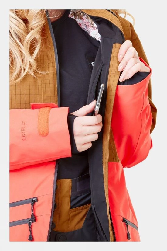 The body-mapping construction incorporates a Thermal Dry System that wicks away sweat where you need it most and a Coremax lining that eliminates cold spots. The fully-taped seams, wrists gaiters, and waterproof zippers keep moisture out, and for enhanced protection and fit, the hood, cuffs, and powder skirt that attaches to your pants are all adjustable.