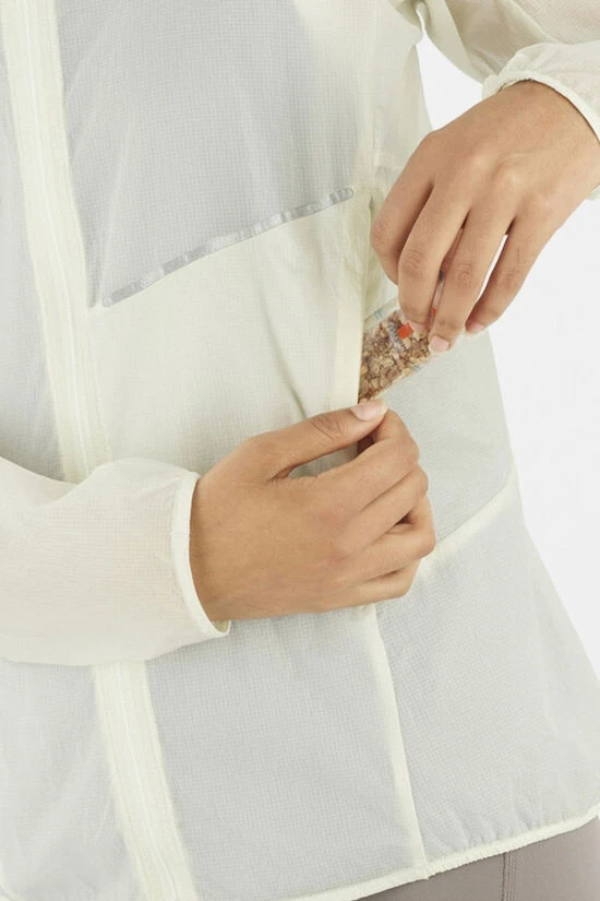 Thoughtfully designed with runners in mind, the Sense Aero Wind Jacket boasts a fixed hood for added coverage, and smart venting with a press button to secure the jacket when opened, letting you stay cool without sacrificing coverage. Whether you’re on a sunrise trail or powering through intervals, reflective details provide visibility in low light, so you can run with confidence any time of day.